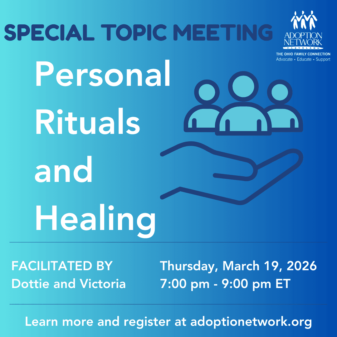 We believe adoption is a complex, lifelong, and intergenerational journey for all those whose lives are impacted by it. These meetings connect and empower individuals impacted by adoption, kinship, foster care, and DNA Discoveries and provide a source of healing, understanding, and learning. Recognizing that a unified voice is a strong voice, we advocate for truth and honesty on behalf of adoptees, who wonder where they came from and why they were placed for adoption; for birth families, who have never forgotten the child; and for adoptive families, who deserve to have their questions addressed honestly. We recognize that everyone has a right to know their genetic history. By bringing these groups together, we learn from the experiences of each other and have the opportunity to explore and process our own journeys.